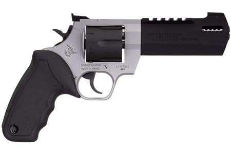 Winner of the 2019 American Hunter Handgun of the Year Golden Bullseye Award, the Taurus Raging Hunter is a next-generation, big-bore revolver that’s first in innovation-and built to last. A fun and effective alternative for short- to medium-range hunting scenarios, this 44 Magnum, six-shot revolver is available in Matte Black or Two Tone finish. Its revolutionary angular barrel design cuts down on overall weight, while its factory tuned porting and gas expansion chamber reduces muzzle lift for quicker target acquisition. Cushioned insert grips ensure a comfortable, controllable shooting experience.