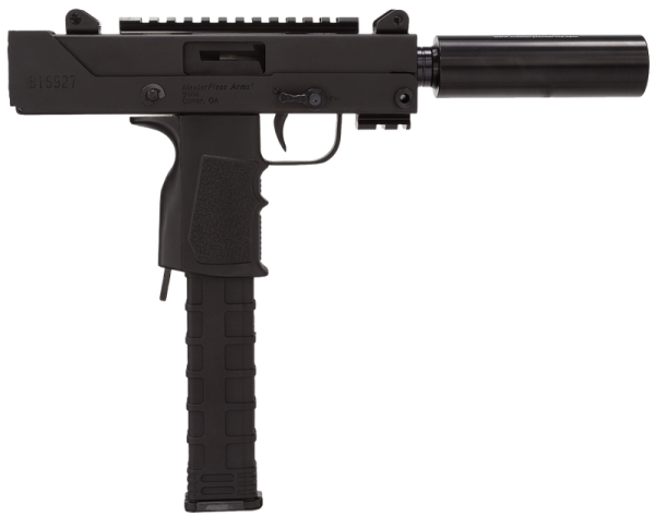 The MasterPiece Arms Defender in 9mm features the innovative side-cocking action with optic mount. The Defender has a threaded barrel, lever safety selector, 30-round magazine, parkerized finish, 1:14 twist, and a plastic carrying case. This MasterPiece Arms has a 6″ barrel. Made in the USA.