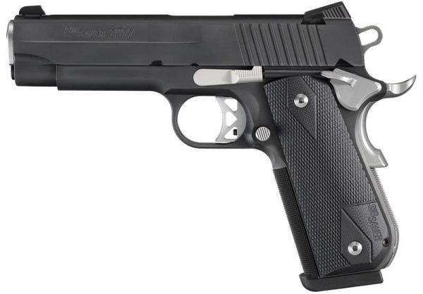 The legendary 1911 design has been brought into the 21st century with the refinements today’s shooters demand, The 1911 Fastback Carry Nightmare pistol from SIG SAUER, features a stainless steel frame with rounded grip and mainspring housing. Each pistol is built using premium internal parts including a match grade barrel, hammer/sear set and trigger. The all Nitron coated frame and slide is contrasted with natural stainless controls, barrel bushing, extractor and grips screws. The Sig Sauer 1911 Fastback Nightmare is finished with a set of black G10 double diamond grips that makes this 1911 SIG SAUER looks as good as it performs.