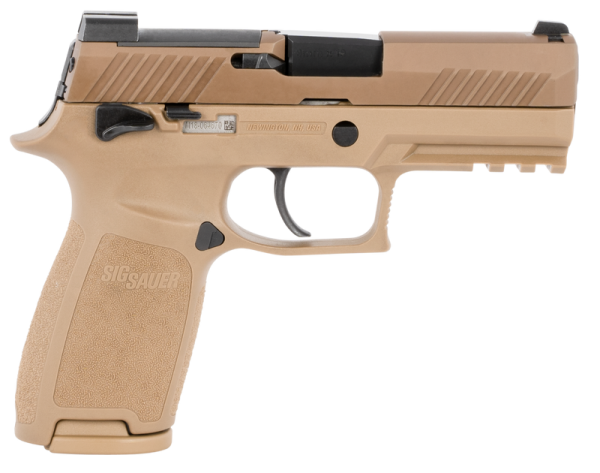 The Sig Sauer P320-M18 is the commercial version that brings the same unprecedented accuracy, extreme reliability and unmatched durability the military demands. The P320 M18 comes standard with SIGLITE night sights and a removable night sight rear plate. The Sig Sauer slide is optic ready and directly compatible with the ROMEO1 PRO. The slide and grip module are the same coyote tan as the military version. This version of the gun is compliant in multiple states where the standard model is not. As always, please check with your local FFL in order to determine if this gun is legal for you to own in your state.